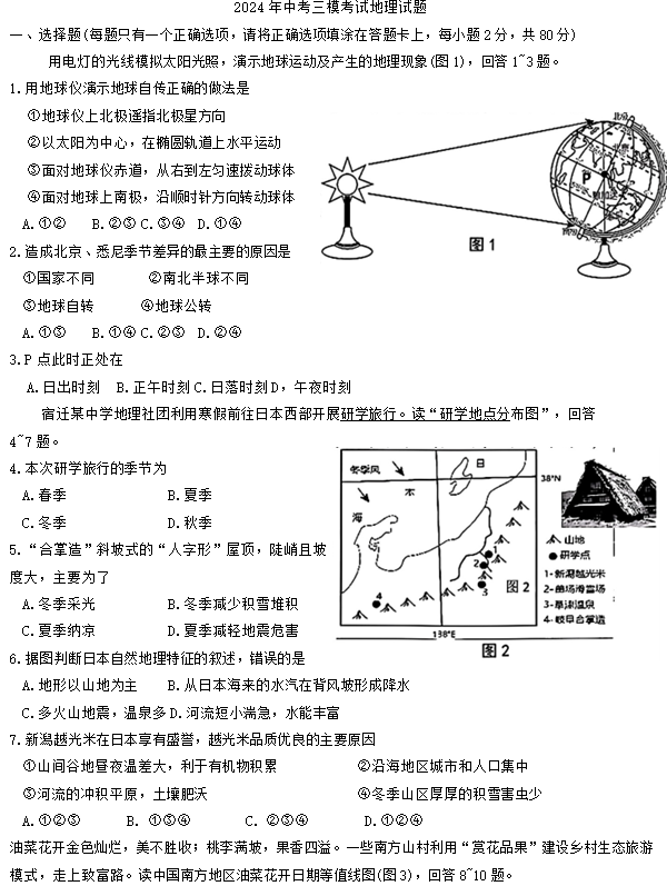 江苏100教学资源网 八下 2024年江苏省宿迁市泗阳县中考三模地理试题(含答案) https://www.jiangsu100.com/10231.html