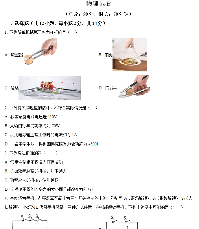 江苏100教学资源网 九上 江苏省宿迁市宿城区2024-2025学年九年级上学期期中考试物理试题(含解析) https://www.jiangsu100.com/13991.html
