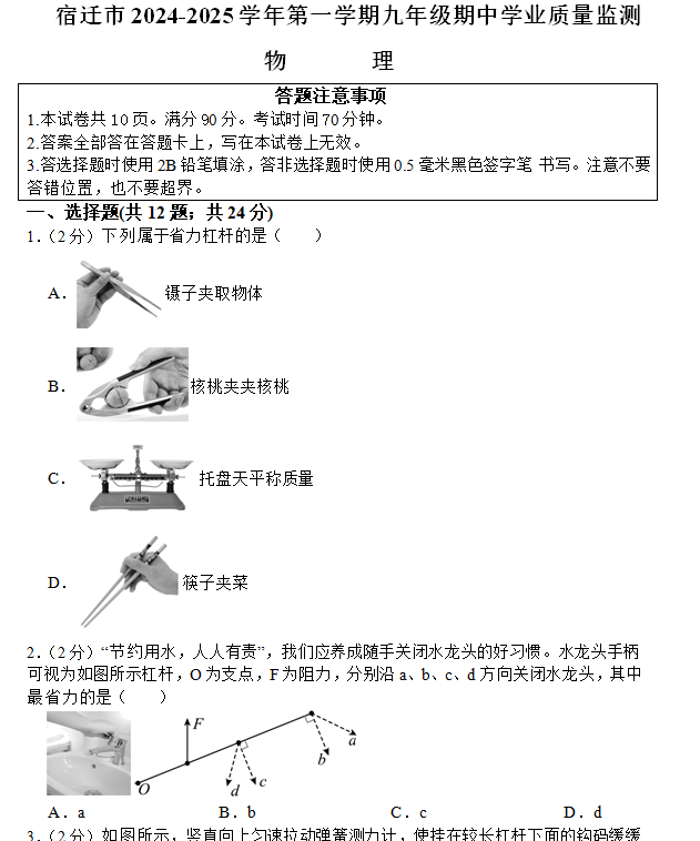 江苏100教学资源网 九上 江苏省宿迁市中原二中2024-2025物理期中模拟卷(含解析) https://www.jiangsu100.com/14000.html