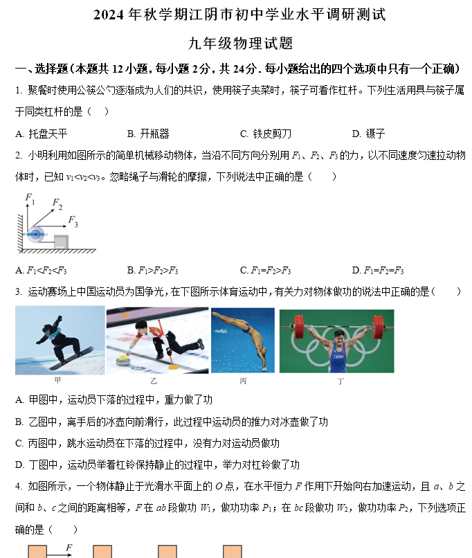 江苏100教学资源网 九上 江苏省无锡市江阴市2024—2025学年九年级上学期期中考试物理试题(含解析) https://www.jiangsu100.com/14013.html