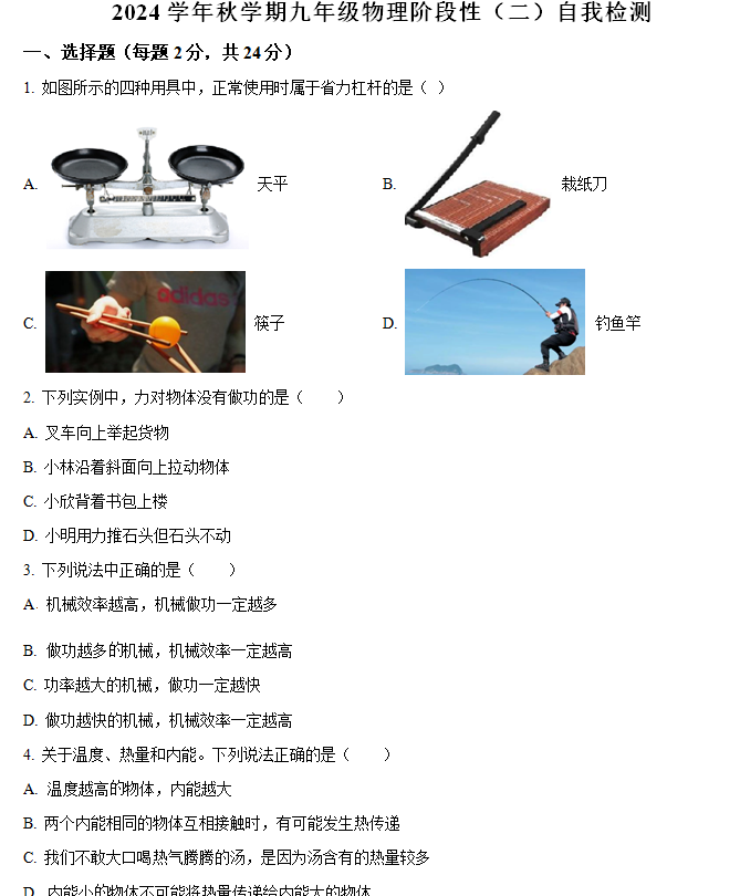 江苏100教学资源网 九上 江苏省盐城市部分学校(盐中、射阳初级中学、射阳三中、六中等公立学校)2024-2025学年九年级上学期期中考试物理试题(含解析) https://www.jiangsu100.com/14049.html