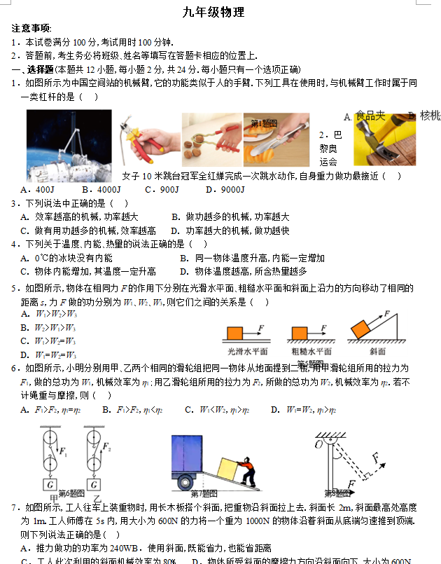 江苏100教学资源网 九上 江苏省扬州市江都区2024-2025学年九年级上学期期中考试物理试卷(含答案) https://www.jiangsu100.com/14089.html