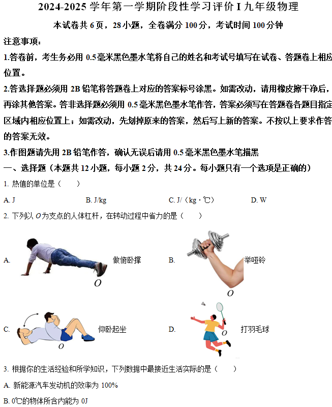 江苏100教学资源网 九上 江苏省镇江市镇江新区2024-2025学年九年级上学期11月期中物理试题(含解析) https://www.jiangsu100.com/14107.html