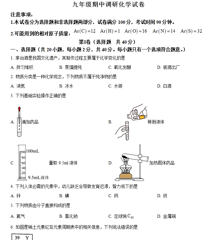 - 江苏省扬州市树人学校2024–2025学年九年级上学期期中化学试卷(含答案) 2025-09-21