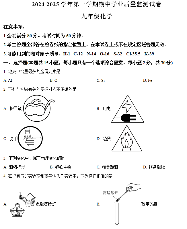 江苏100教学资源网 九上 江苏省南京市建邺区2024-2025学年九年级上学期期中质量监测化学试卷(含解析) https://www.jiangsu100.com/14149.html