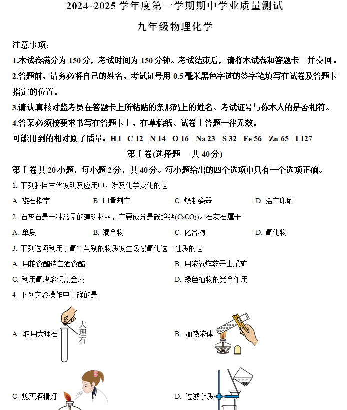 江苏100教学资源网 九上 江苏省南通市海安市2024-2025学年九年级上学期期中物理、化学试题-初中化学(含解析) https://www.jiangsu100.com/14164.html