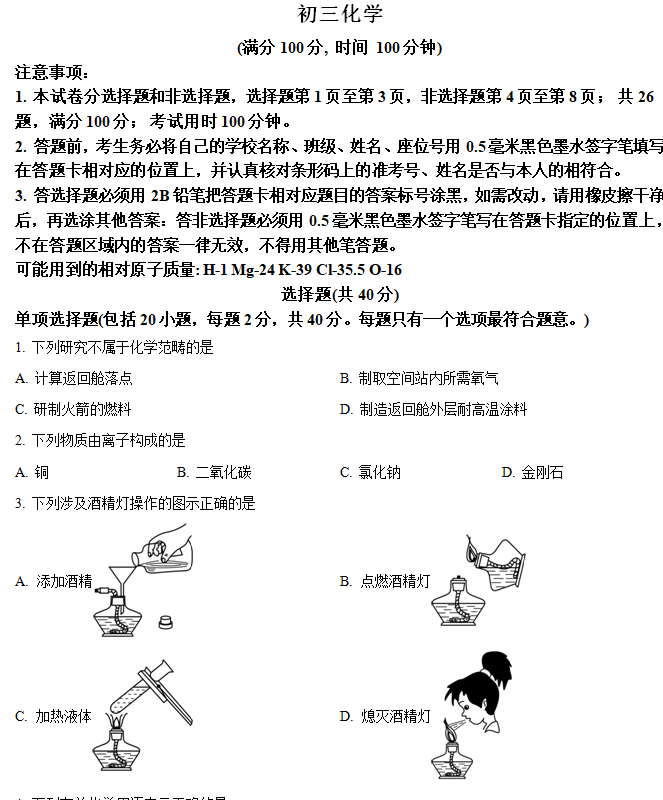 江苏100教学资源网 九上 江苏省苏州市昆山、太仓、常熟、张家港四市2024-2025学年九年级上学期期中阳光测评化学卷(含解析) https://www.jiangsu100.com/14188.html