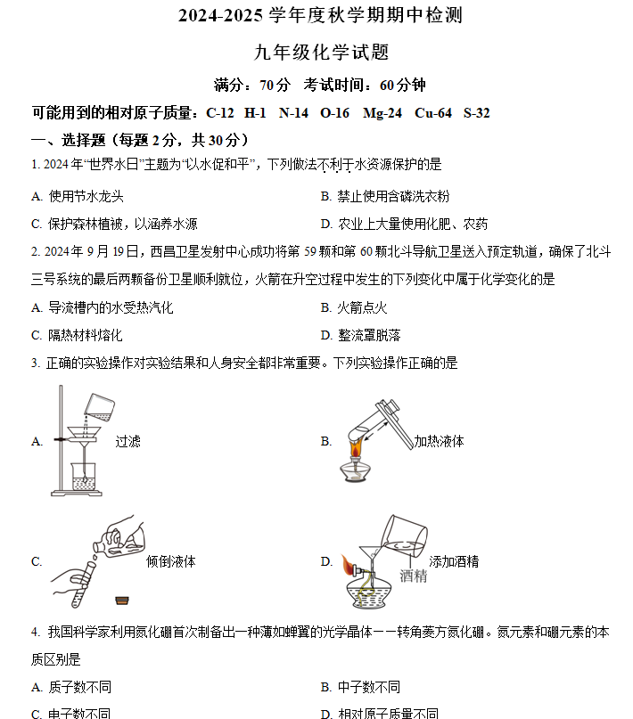 江苏100教学资源网 九上 江苏省盐城市东台市第五教育联盟2024-2025学年九年级上学期期中化学试题(含解析) https://www.jiangsu100.com/14274.html