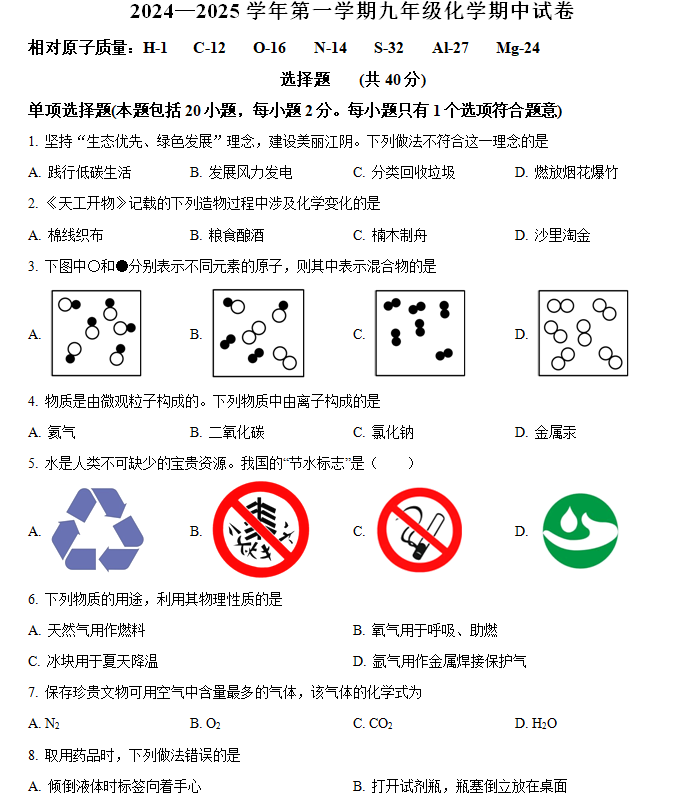 江苏100教学资源网 九上 江苏省扬州市宝应县2024-2025学年九年级上学期期中化学试题(含解析) https://www.jiangsu100.com/14301.html