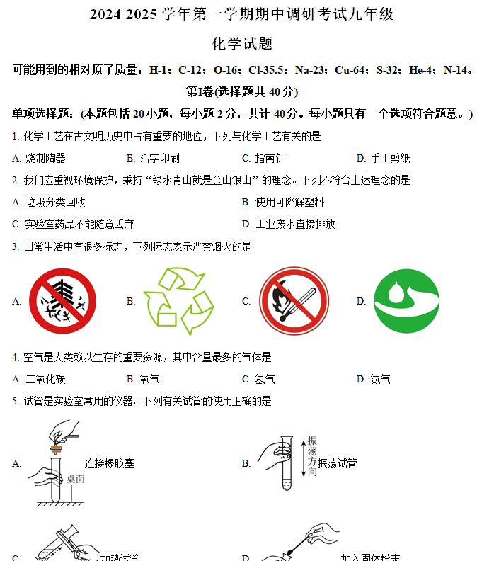 江苏100教学资源网 九上 江苏省扬州市广陵区2024-2025学年九年级上学期期中调研化学试卷(含解析) https://www.jiangsu100.com/14307.html