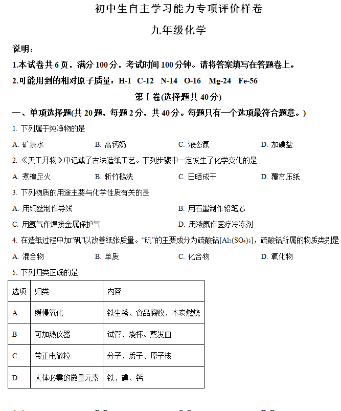江苏100教学资源网 九上 江苏省镇江市丹徒区2024-2025学年九年级上学期11月期中考试化学试题(含解析) https://www.jiangsu100.com/14334.html