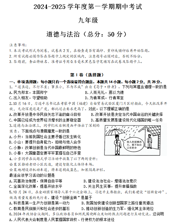 江苏100教学资源网 九上 江苏省盐城市东台市实验中学教育集团2024-2025学年九年级上学期期中道德与法治试题(含答案) https://www.jiangsu100.com/14426.html