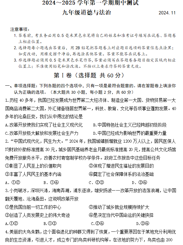 江苏100教学资源网 九上 江苏省镇江市镇江新区 2024-2025学年九年级上学期11月期中道德与法治试题(含答案) https://www.jiangsu100.com/14458.html