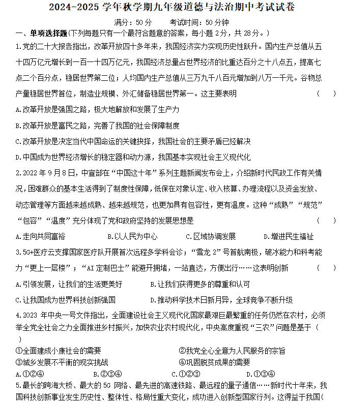 江苏100教学资源网 九上 江苏省盐城市阜宁县多校联考2024-2025学年九年级上学期11月期中道德与法治试题(含答案) https://www.jiangsu100.com/14495.html