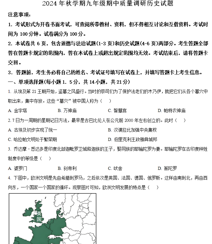 江苏100教学资源网 九上 江苏省常州市金坛区2024-2025学年九年级上学期期中历史试题(含解析) https://www.jiangsu100.com/14517.html