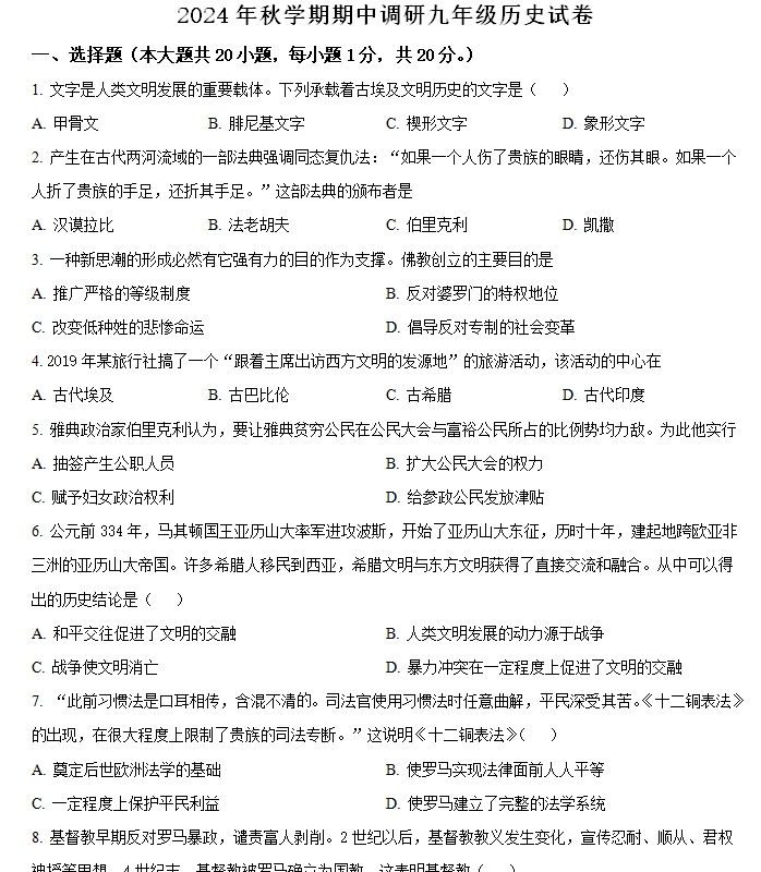 - 江苏省苏州市姑苏区2024-2025学年九年级上学期期中考试历史卷(含答案) 2025-09-21