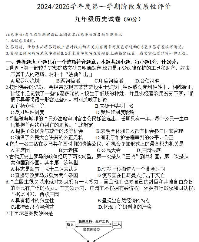 - 江苏省苏州市姑苏区2024-2025学年九年级上学期期中考试历史卷(含答案) 2025-09-21