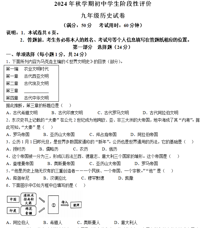 江苏100教学资源网 九上 江苏省泰州市兴化市2024-2025学年九年级上学期期中历史试题(含答案) https://www.jiangsu100.com/14658.html