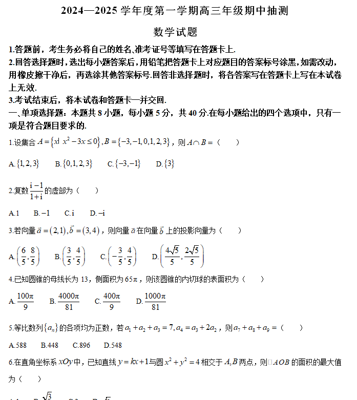 - 江苏省宿迁市2024-2025学年高三上学期11月期中考试 数学(含答案) 2025-09-26