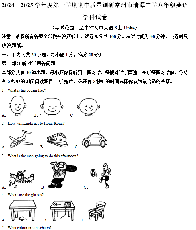 江苏100教学资源网 八上 江苏省常州市清潭中学2024-2025学年八年级上学期英语期中试卷(含解析) https://www.jiangsu100.com/15292.html