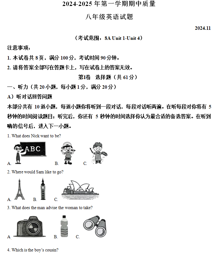 - 江苏省宿迁地区2024-2025学年八年级上学期期中考试英语试题(含答案+听力音频) 2025-10-11