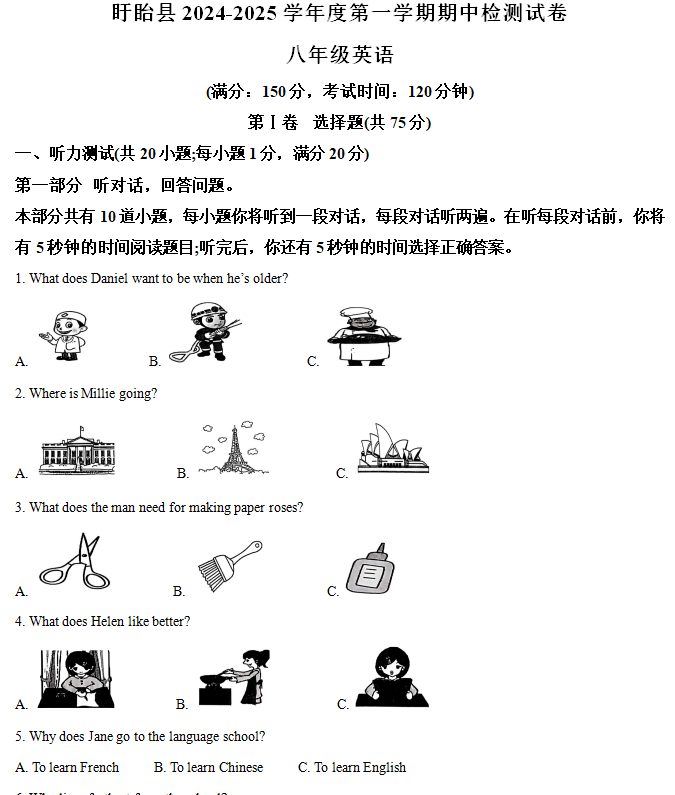 - 江苏省宿迁市泗阳县2024-2025学年八年级上学期期中英语试题(含答案+听力音频) 2025-10-11