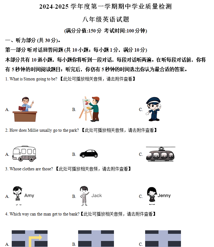 - 江苏省宿迁地区2024-2025学年八年级上学期期中考试英语试题(含答案+听力音频) 2025-10-11