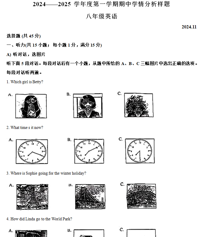 江苏100教学资源网 八上 江苏省南京市联合体2024-2025学年八年级上学期期中考试英语试题(含解析) https://www.jiangsu100.com/15322.html