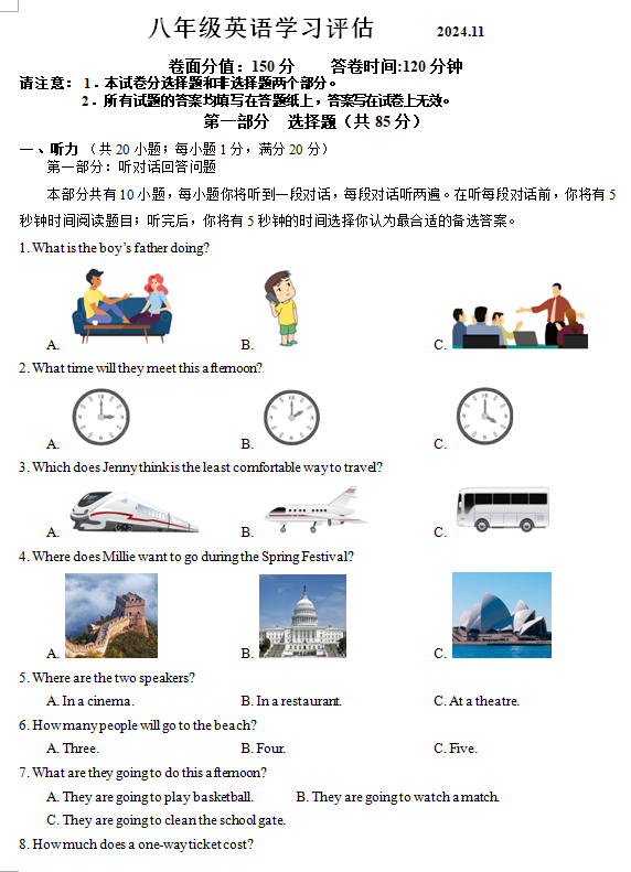 江苏100教学资源网 八上 江苏省南通市海安市初中教学联盟2024-2025学年八年级上学期期中学习评估英语试题(含答案+听力音频) https://www.jiangsu100.com/15337.html