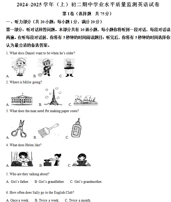 江苏100教学资源网 八上 江苏省南通市通州区2024-2025学年八年级上学期期中学业水平质量监测英语试题(含解析) https://www.jiangsu100.com/15352.html