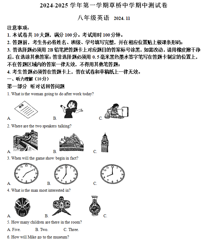 江苏100教学资源网 八上 江苏省苏州市姑苏区草桥中学校2024-2025学年八年级上学期期中考试英语试题(含解析) https://www.jiangsu100.com/15358.html