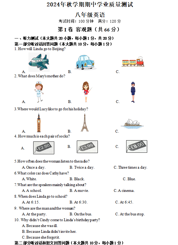 江苏100教学资源网 八上 江苏省无锡市江阴市青阳镇2024-2025学年八年级上学期期中考试英语试卷(含答案+听力音频) https://www.jiangsu100.com/15430.html