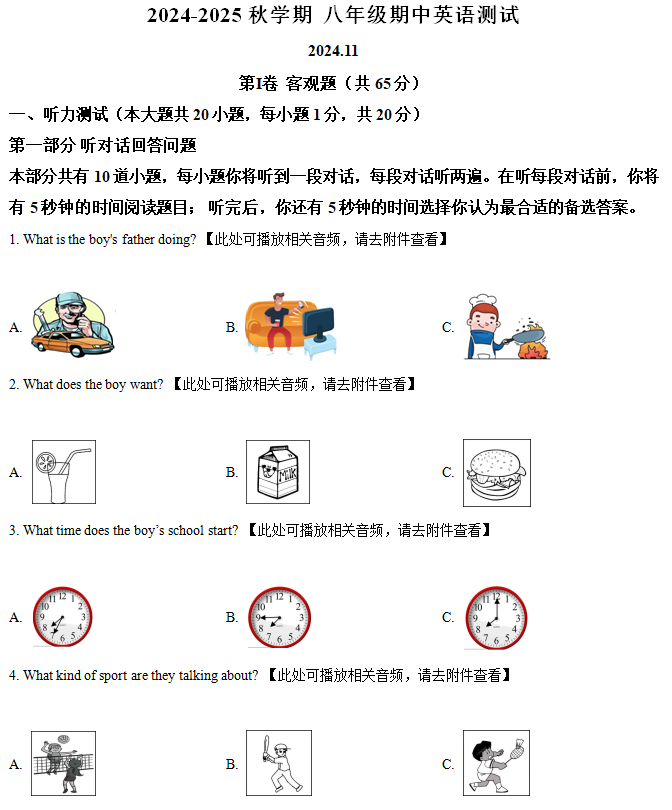 江苏100教学资源网 八上 江苏省无锡市锡东片2024-2025学年八年级上学期期中英语试题(含解析+听力音频) https://www.jiangsu100.com/15442.html