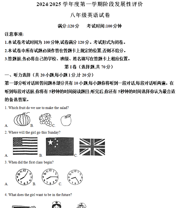 江苏100教学资源网 八上 江苏省盐城市盐都区第一共同体2024-2025学年八年级上学期11月期中考试英语试卷(含解析) https://www.jiangsu100.com/15497.html