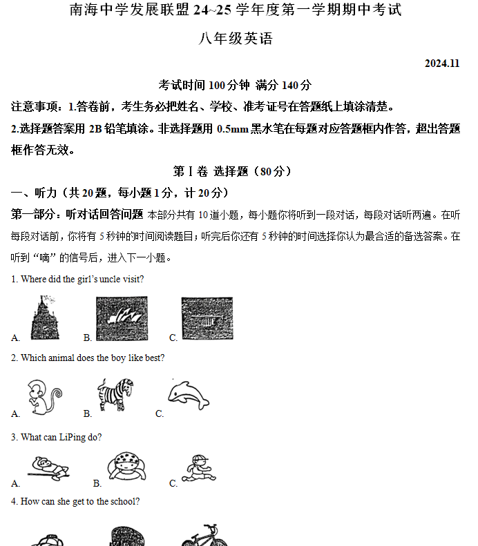 江苏100教学资源网 八上 江苏省扬州市高邮南海中学发展联盟2024~2025学年八年级上学期期中考试 英语试题(含解析) https://www.jiangsu100.com/15503.html