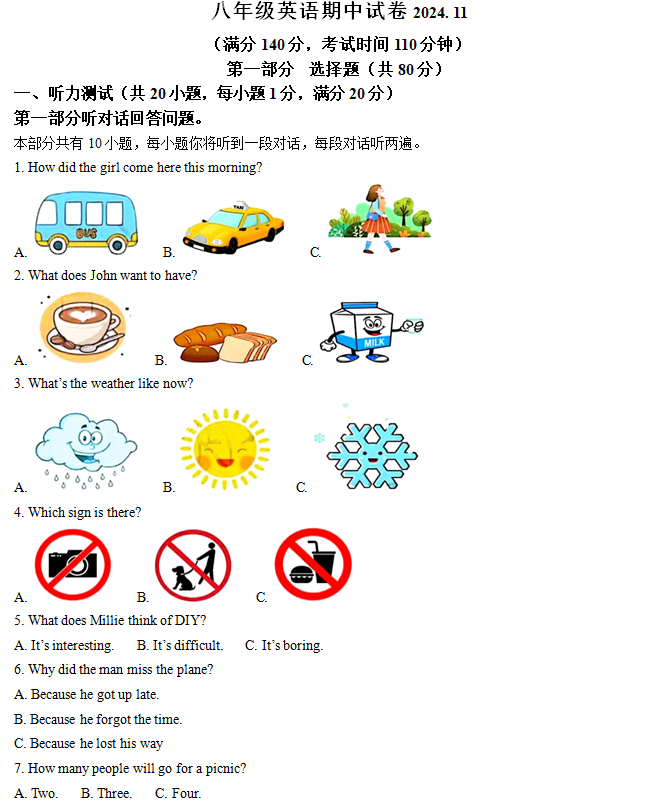 - 江苏省南通市2024-2025学年八年级上学期英语期中测试卷(含答案) 2025-10-12