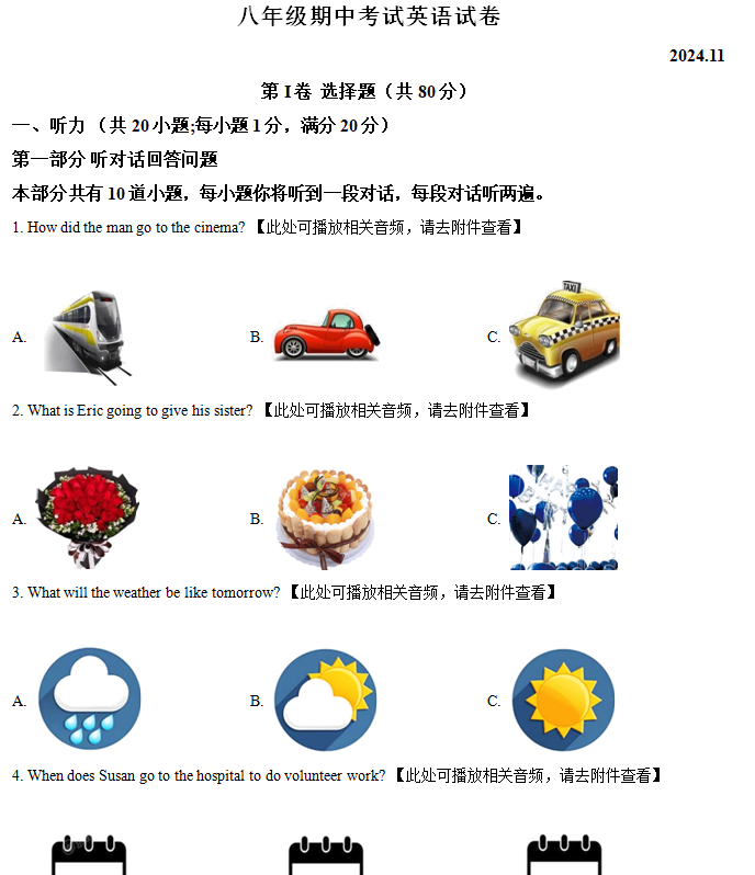 江苏100教学资源网 八上 江苏省扬州市江都区邵樊片2024-2025学年八年级上学期期中考试英语试题(含解析+听力音频) https://www.jiangsu100.com/15528.html