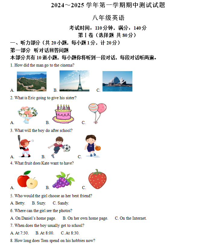 江苏100教学资源网 八上 江苏省扬州市仪征市2024-2025学年八年级上学期期中英语试题(含解析) https://www.jiangsu100.com/15537.html