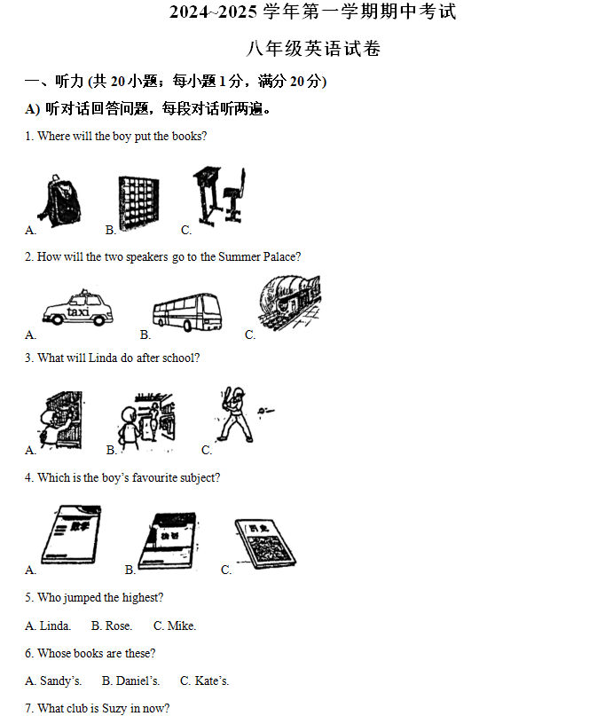- 江苏省南通市2024-2025学年八年级上学期英语期中测试卷(含答案) 2025-10-12