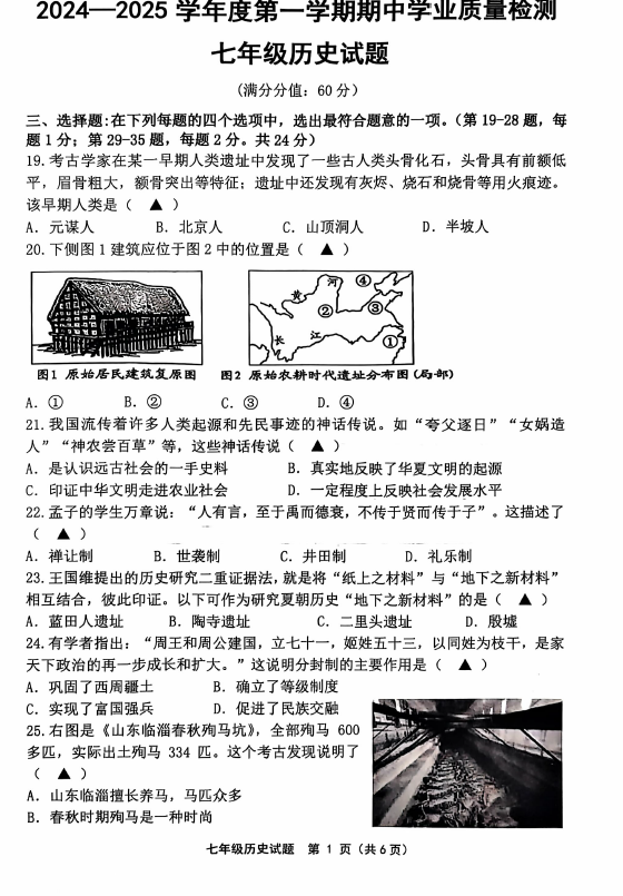 - 江苏省宿迁市宿城区2024-2025学年七年级上学期11月期中历史试题(含答案) 2025-10-12