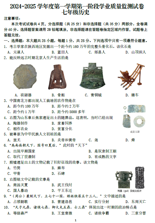 江苏100教学资源网 七上 江苏省南京市秦淮区2024-2025学年七年级上学期历史期中考试试题(含答案) https://www.jiangsu100.com/15613.html