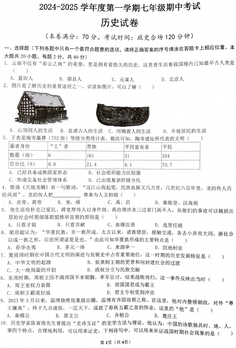 江苏100教学资源网 七上 江苏省宿迁市宿城区新区教学共同体2024-2025学年七年级上学期11月期中历史试题(含答案) https://www.jiangsu100.com/15649.html