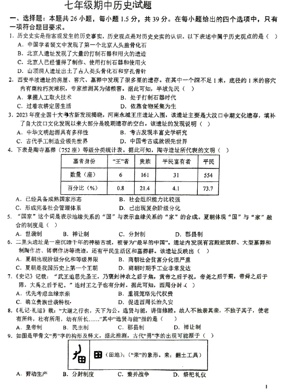 江苏100教学资源网 七上 江苏省徐州市沛县第五中学2024-2025学年部编版七年级上学期11月期中历史试题(含答案) https://www.jiangsu100.com/15703.html