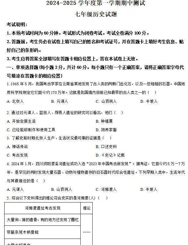 江苏100教学资源网 七上 江苏省徐州市邳州市2024-2025学年七年级上学期期中历史试题(含解析) https://www.jiangsu100.com/15706.html