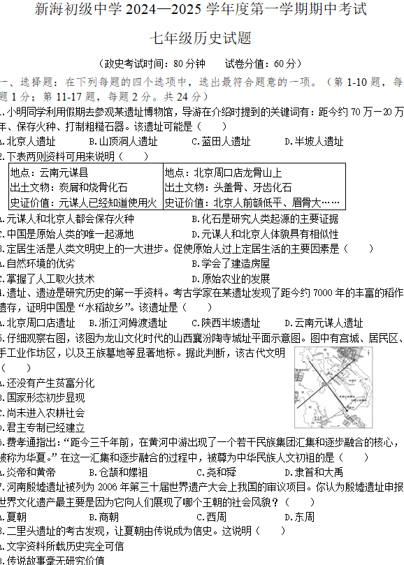 江苏100教学资源网 七上 江苏省连云港市新海初级中学2024-2025学年七年级上学期期中历史试题(含答案) https://www.jiangsu100.com/15742.html