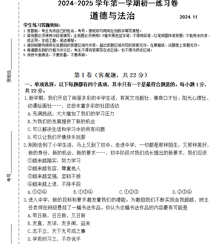江苏100教学资源网 七上 江苏省苏州工业园区星海实验初级中学2024-2025学年七年级上学期期中考试道德与法治试卷(含答案) https://www.jiangsu100.com/15803.html