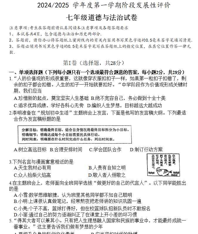 江苏100教学资源网 七上 江苏省盐城市盐都区第一共同体2024-2025学年七年级上学期11月期中考试道德与法治试卷(含答案) https://www.jiangsu100.com/15910.html