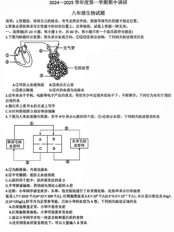 江苏100教学资源网 八上 江苏省徐州市邳州市2024-2025学年八年级上学期期中生物试题(含答案) https://www.jiangsu100.com/16869.html