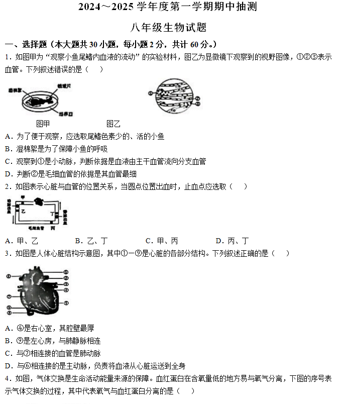江苏100教学资源网 八上 江苏省徐州市新沂市2024-2025学年八年级上学期期中生物学试题(含答案) https://www.jiangsu100.com/16872.html
