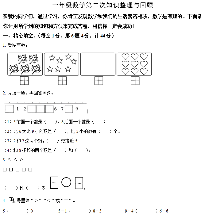 江苏100教学资源网 一上 2024-2025学年江苏省淮安市洪泽区洪泽区四校联考苏教版一年级上册期中知识整理与回顾数学试卷(含解析) https://www.jiangsu100.com/16915.html
